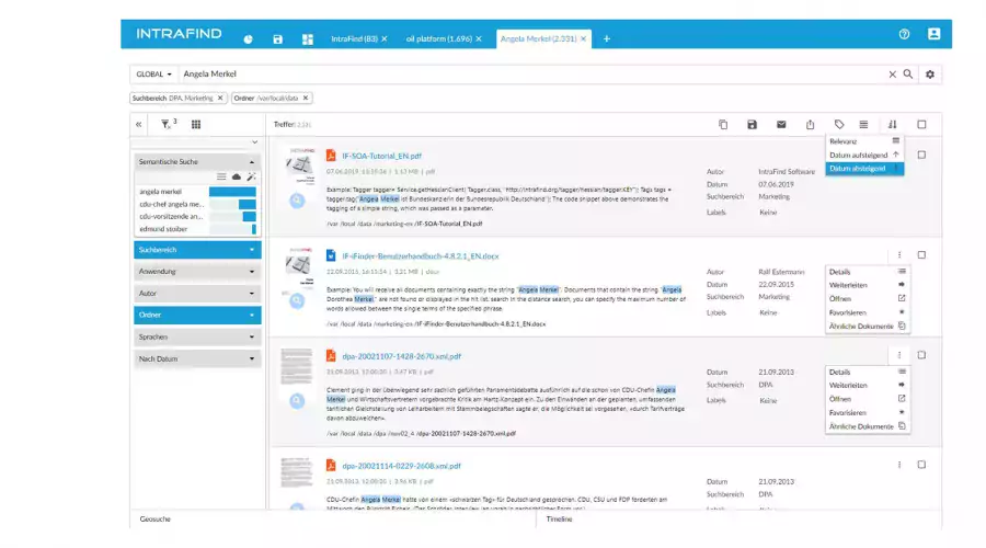 - Die Software bietet weit mehr als nur Volltextsuche. Sie erkennt Zusammenhänge und unterstützt Sie beim Nutzbarmachen Ihrer Wissensschätze. So setzen Sie zukunftssicher intelligentes Daten- und Metadatenmanagement für Ihr Unternehmen um.