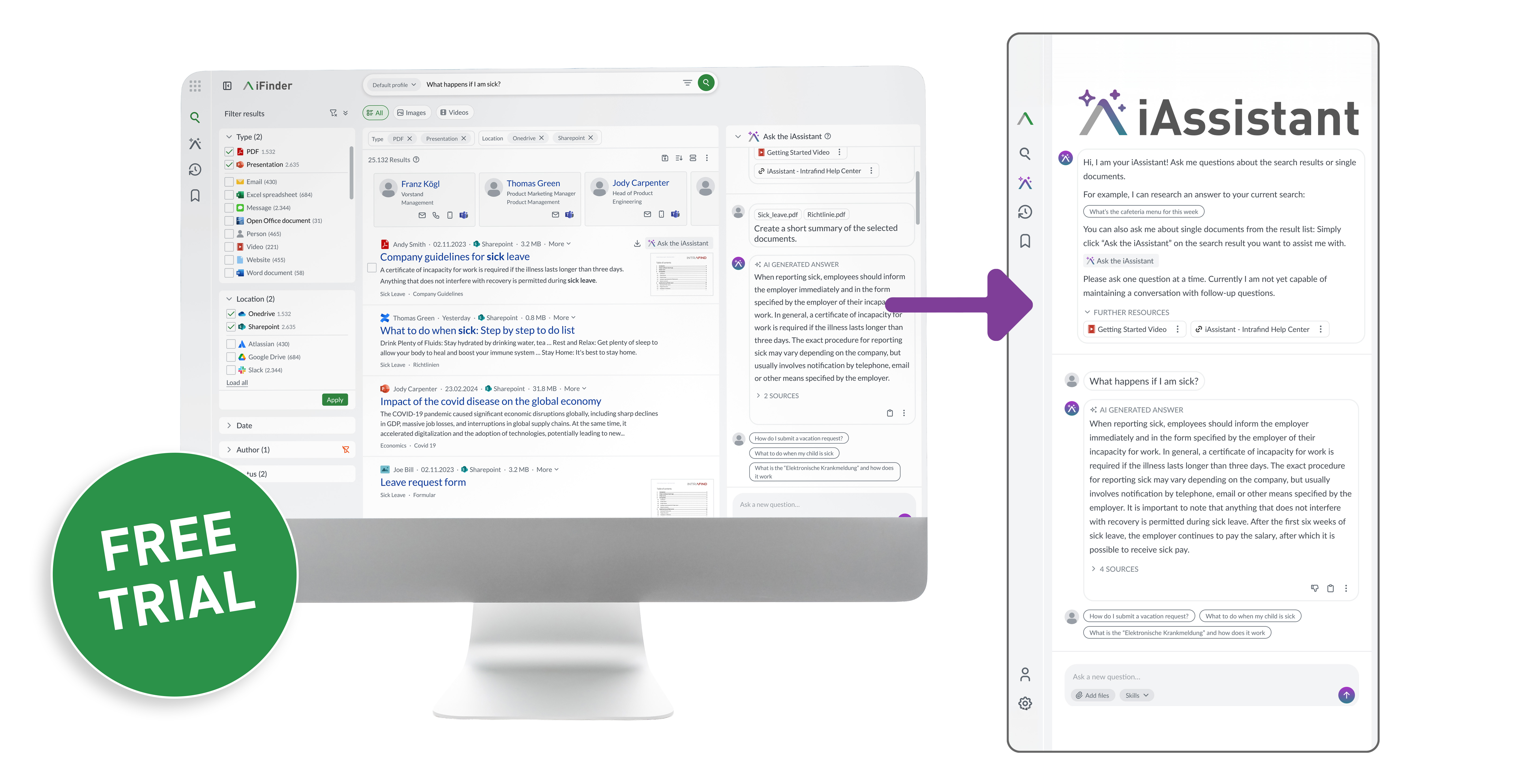 With AI, natural language processing and semantic search, iFinder finds the information you need - regardless of where it is stored. Is your database growing? iFinder remains fast & adaptable - even with billions of documents.